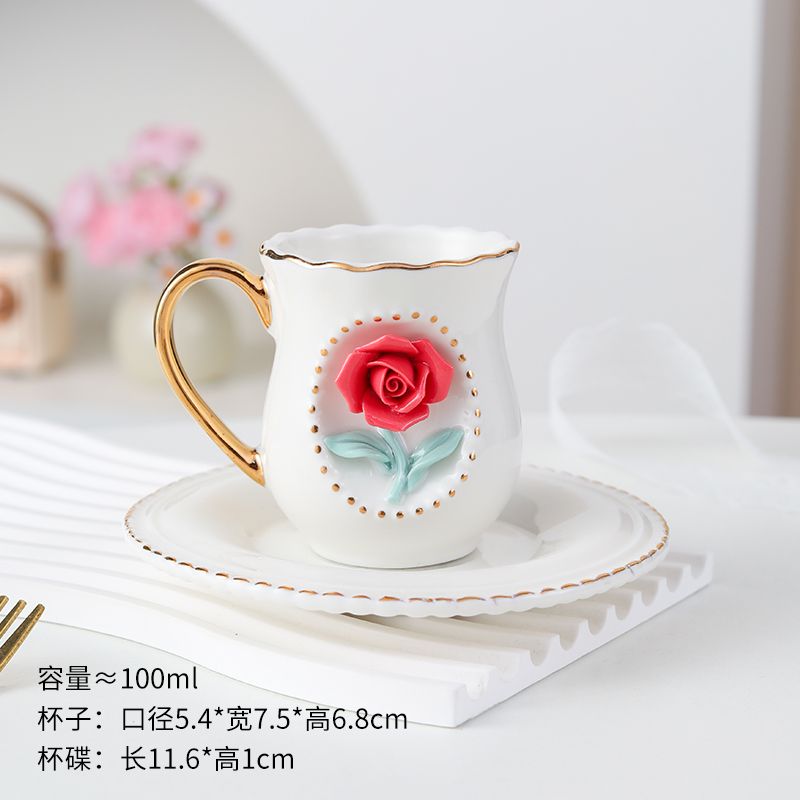 Ceramic rose cup, coffee cup plate set, handmade ceramic flower cup