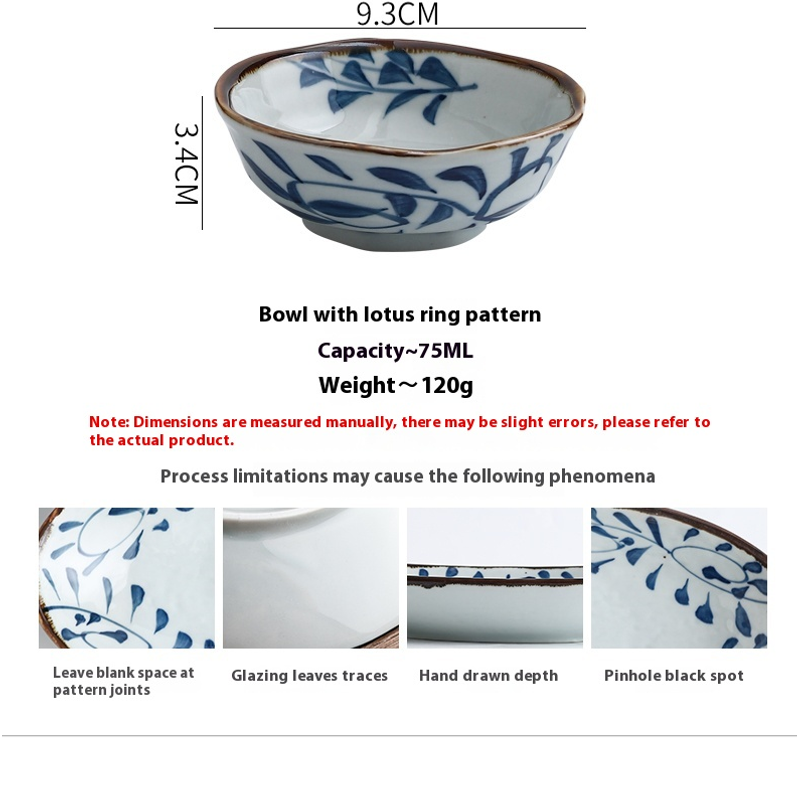 Ceramic Underglaze Sauce Dishes Commercial Catering Snacks Food Bowl 4 Inch 1PCS