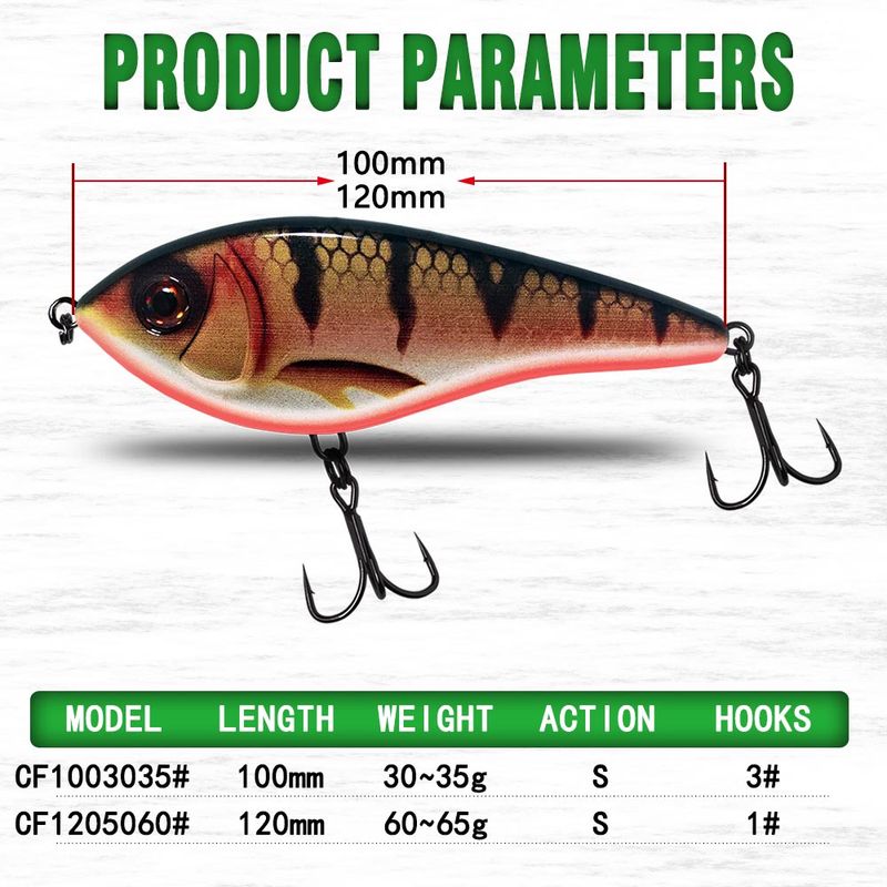 CF Lure Jerk Bait 100mm/120mm Slow Sinking Musky Pike Slider Bass Fishing Lure Tackle