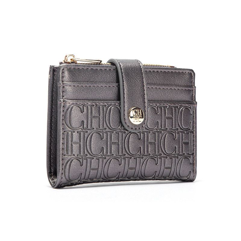 CH Luxury Brand Classic Retro Square Design Card Case Fashion Button Classic Folding Money Clip Compact Lightweight Luxury Women