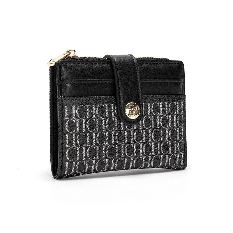 CH Luxury Brand Classic Retro Square Design Card Case Fashion Button Classic Folding Money Clip Compact Lightweight Luxury Women