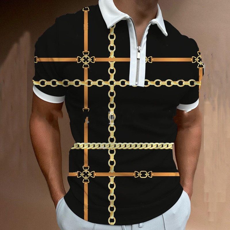 Chain Print Polo Shirt Casual Short-sleeved Men's T-shirt Top P1 Color M