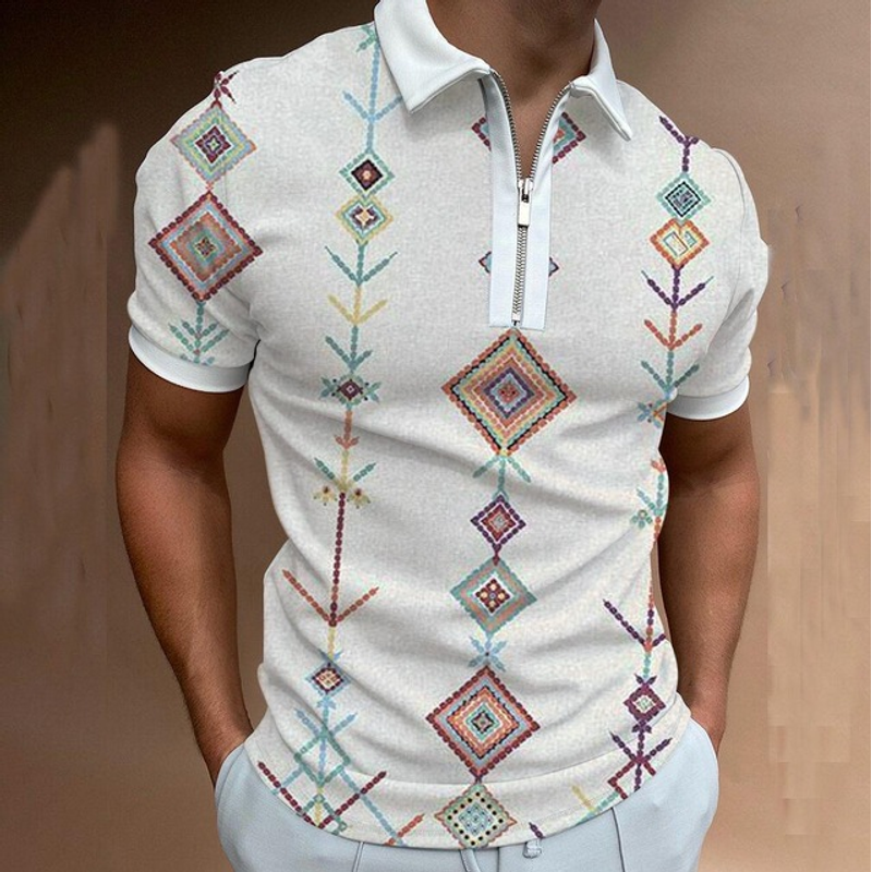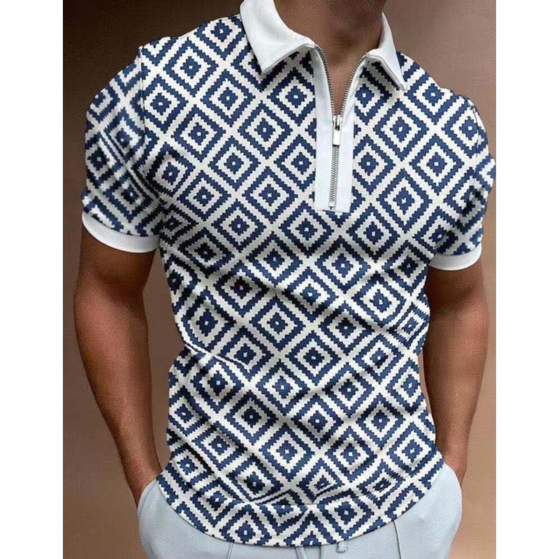 Chain Print Polo Shirt Casual Short-sleeved Men's T-shirt Top P13 Color 2XL