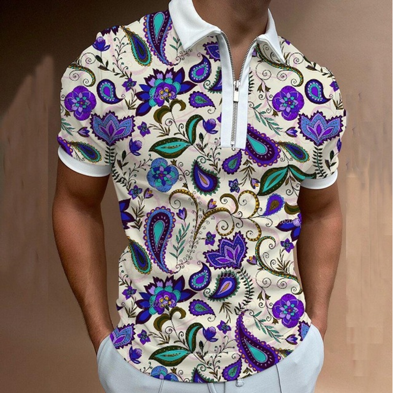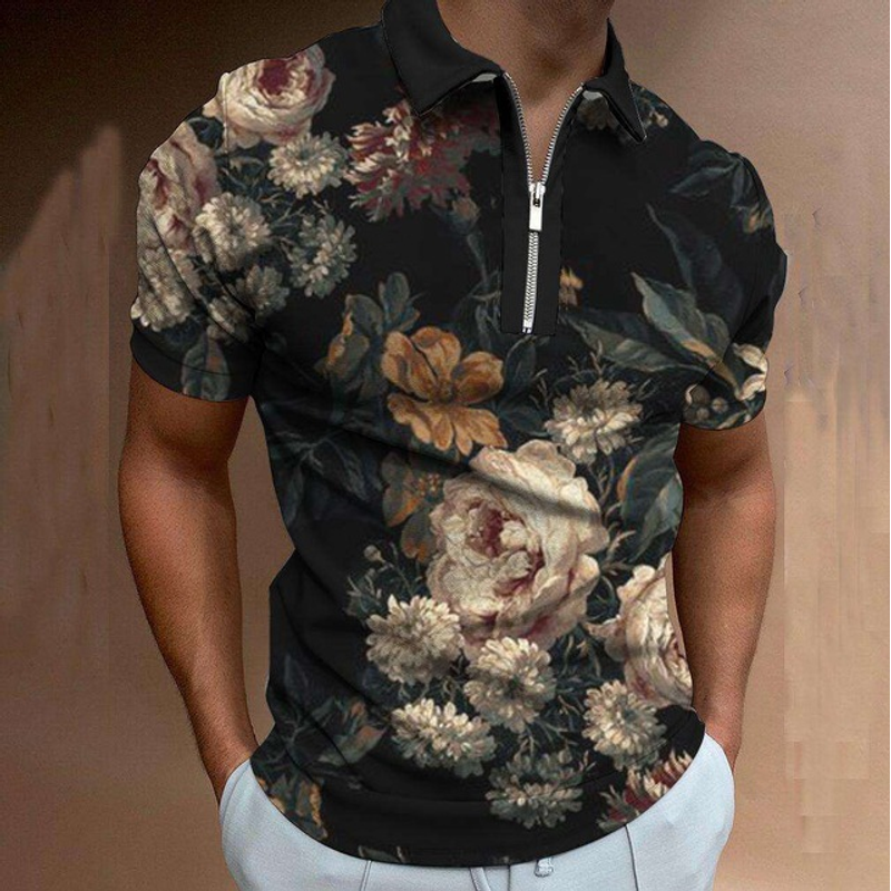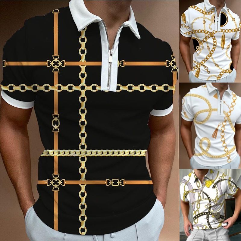 Chain Print Polo Shirt Casual Short-sleeved Men's T-shirt Top P16 Color 3XL