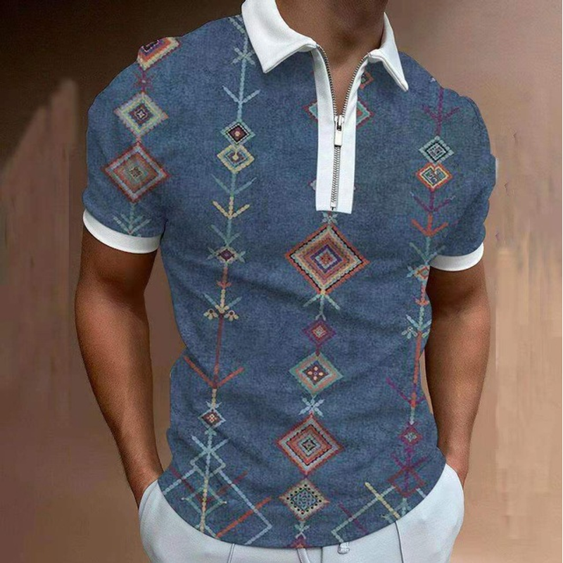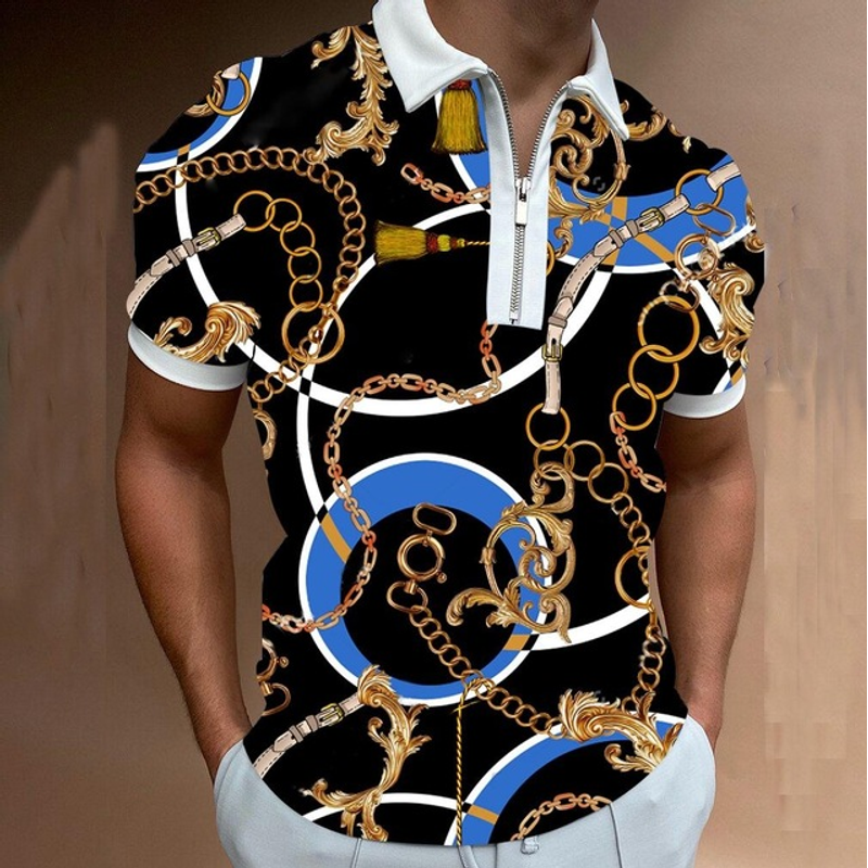 Chain Print Polo Shirt Casual Short-sleeved Men's T-shirt Top P6 Color 3XL