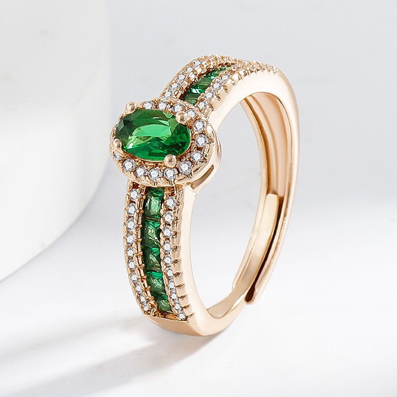 Champagne Real Gold Color Affordable Luxury Style Open Ring Green Diamond Adjustable Opening