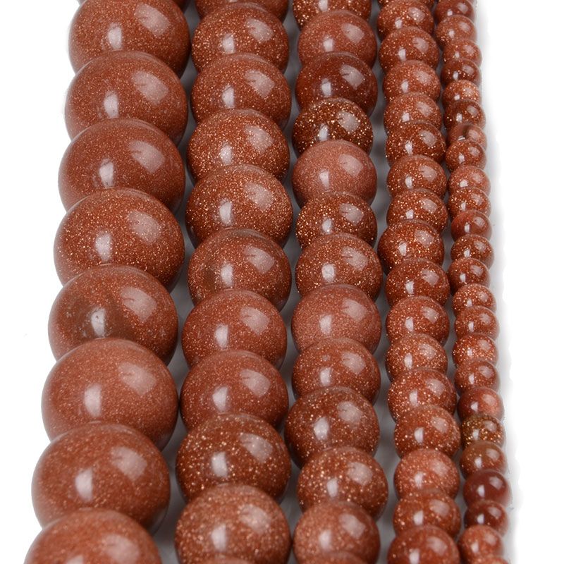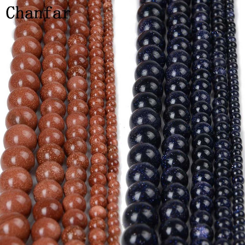 · Name:Chanfar 4 6 8 10 12mm Natural Gold Color Sand Stone Beads Loose Dark Blue Sand stone Round Beads for DIY Jewelry