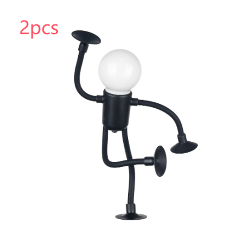 Changeable Shape Funny Sportsman Night Light Versatile Lamp Creative Funny Quirky Button Battery Desk Lamp Ornament Vacuum Suction 0.58W Black2pcs