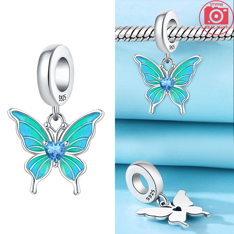 Charms 925 Silver Blue Original Stars Heart Zircon Chameleon Panda Glass Beads Fit Bracelet Jewelry Women Diy Accessories