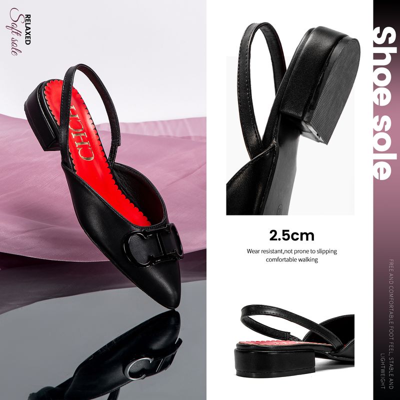 CHCH Women's Sandals 2024 New Black Pointed Flat bottomed loafers Simple Black Business Women's Shoes