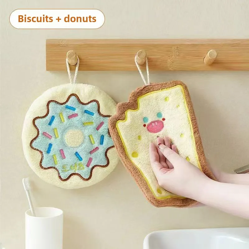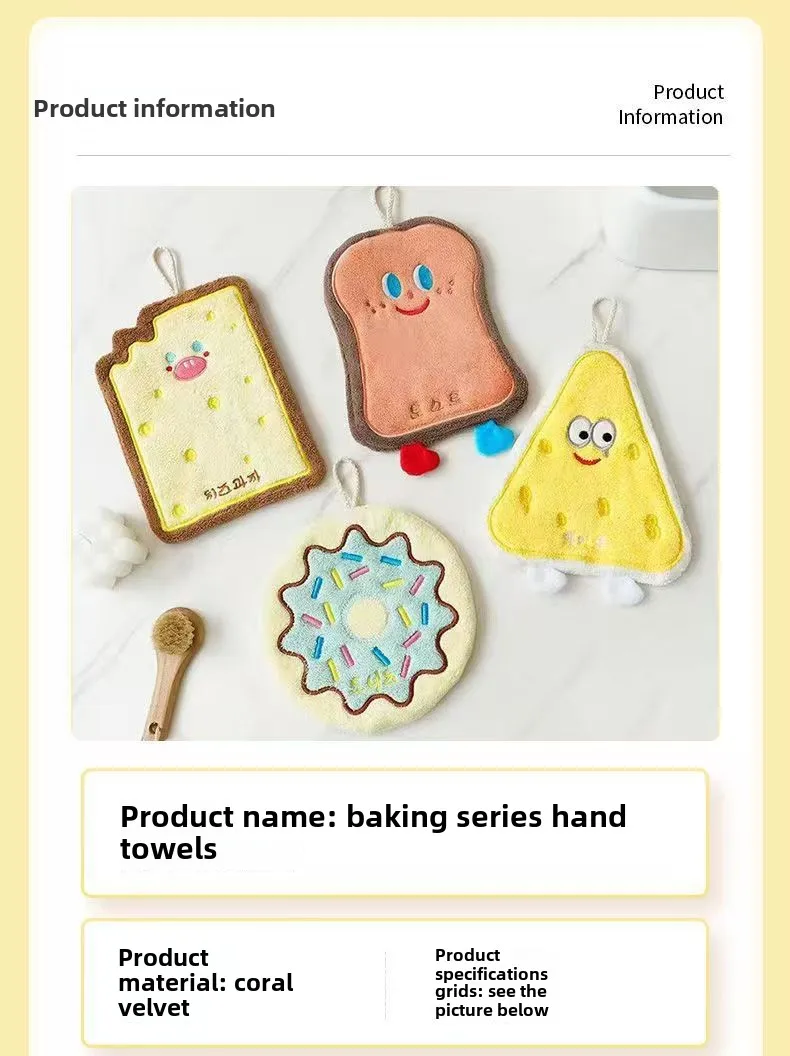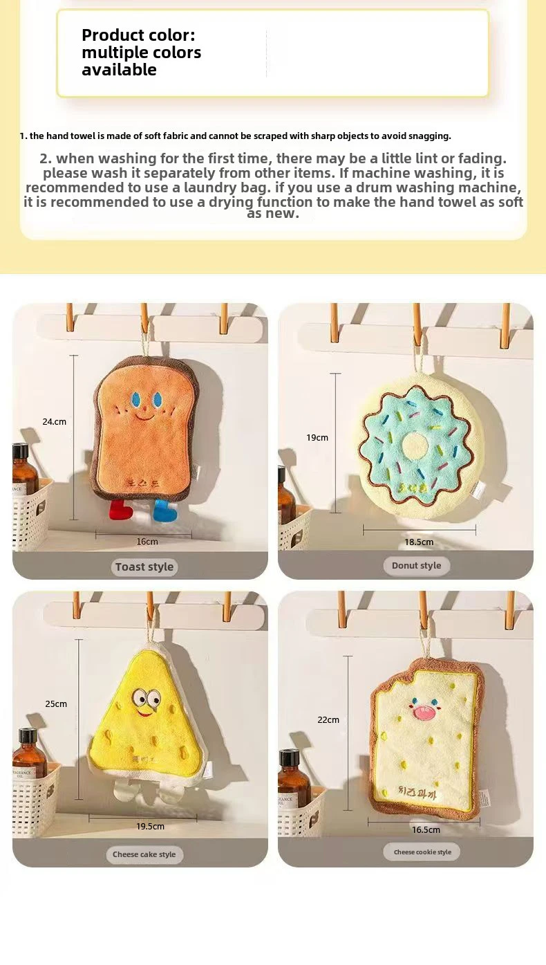 Cheese coral velvet hand wipes Cute soft absorbent towel Kitchen bathroom Bread Toast slices cookie doughnut hand wipes