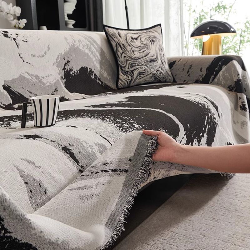Chenille Sofa Cover Towel Four Seasons Universal Light Luxury Ink Gray Smudges 180x130cm