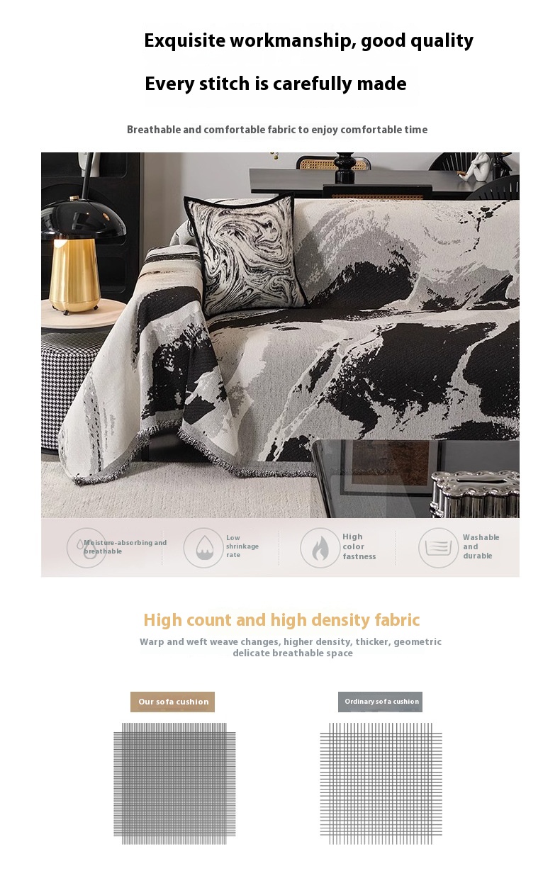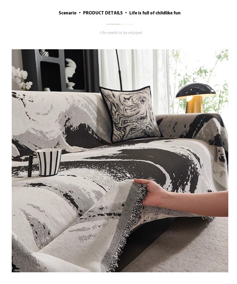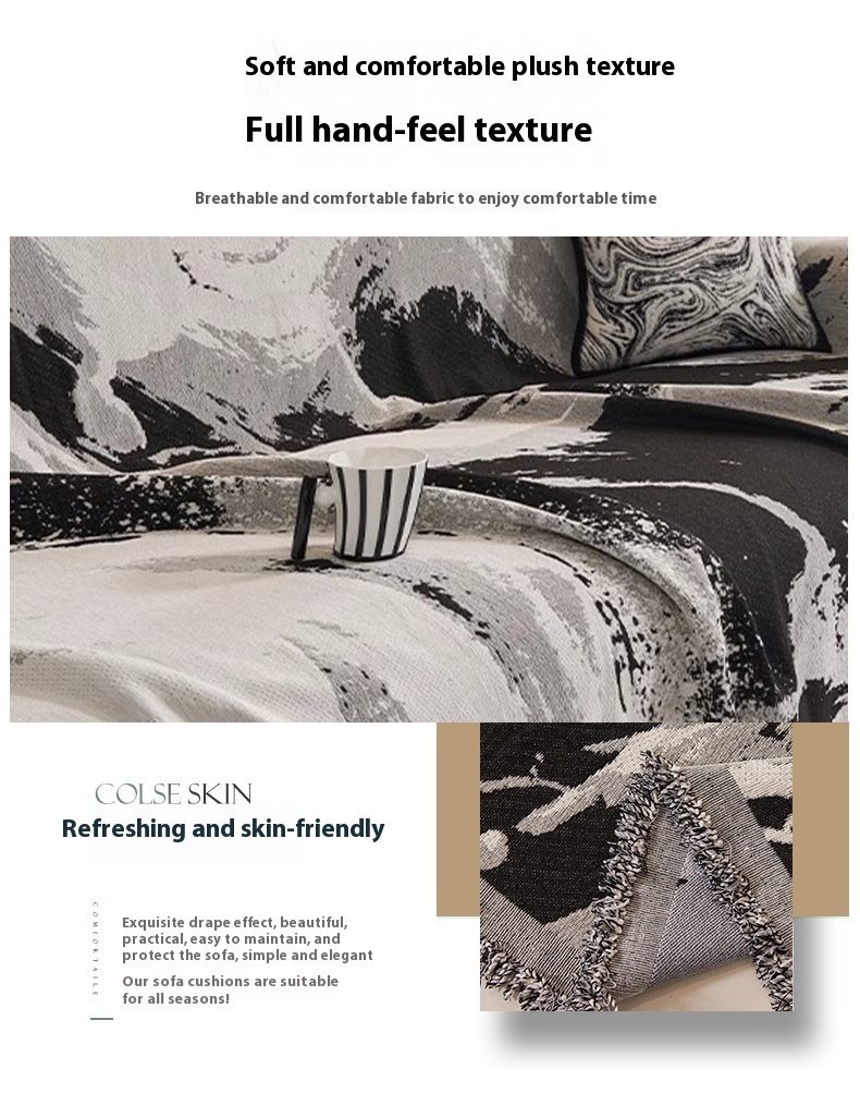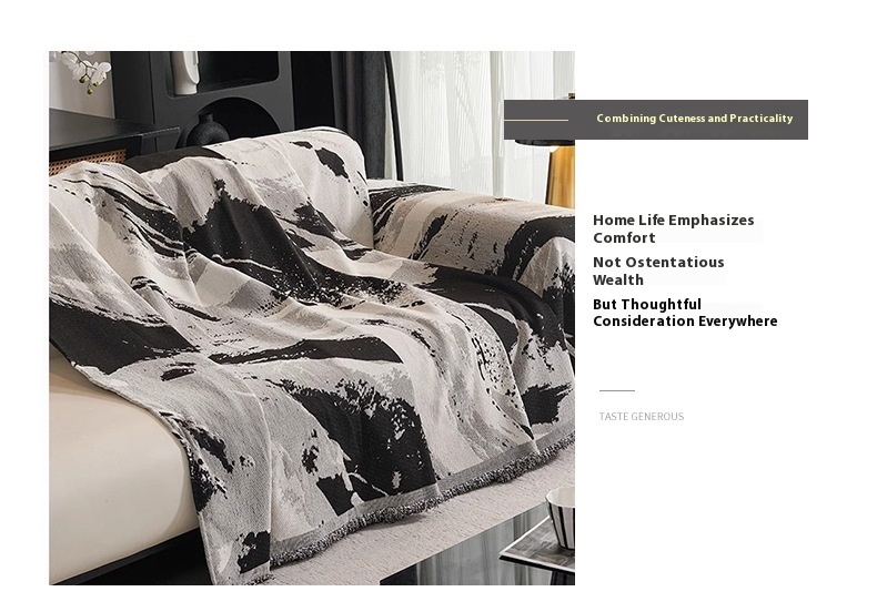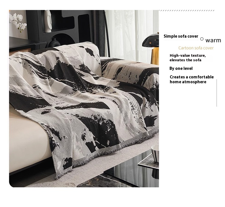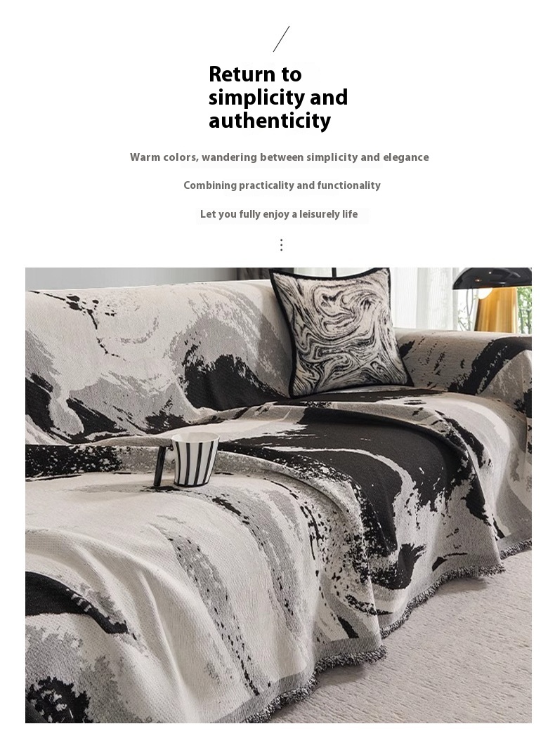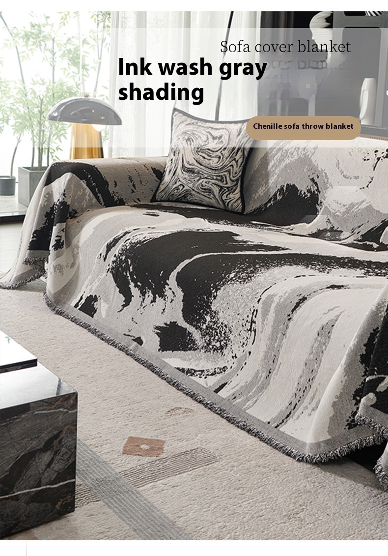 Chenille Sofa Cover Towel Four Seasons Universal Light Luxury Ink Gray Smudges 90x90cm