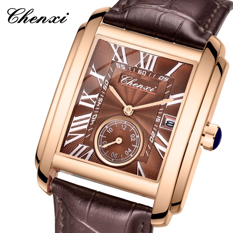 Chenxi 8216 New Fashion Boy Classic Rectangle Leather Strap Wristwatches Mens Luxury Brand Watches Quartz Clock Montre Femme