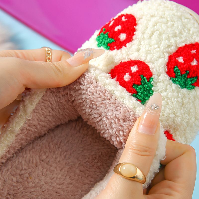Chic Mix Color Women's Cotton Slippers Winter 2025 Flat Heel Indoor Anti Slip Fur Slippers Woman Rainbow Heart Print Home Slides