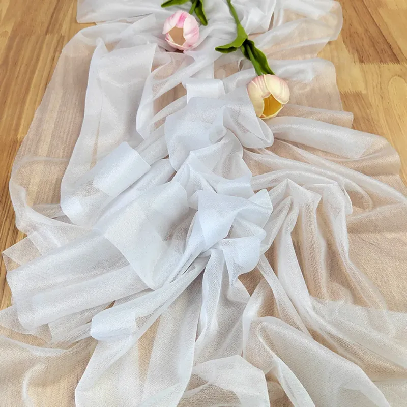 Chiffon Table Runner Sheer Fabric Silk for Boho Sheer Fabric Wedding Arch Overlay Draping Decoration Birthday Party Table Decor