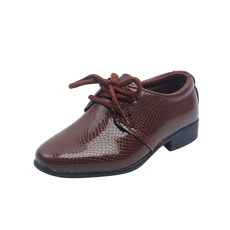 Child Boys Black Leather Shoes Britain Style for Party Wedding Low-heeled Lace-up Kids Fashion Student School Performance Shoes