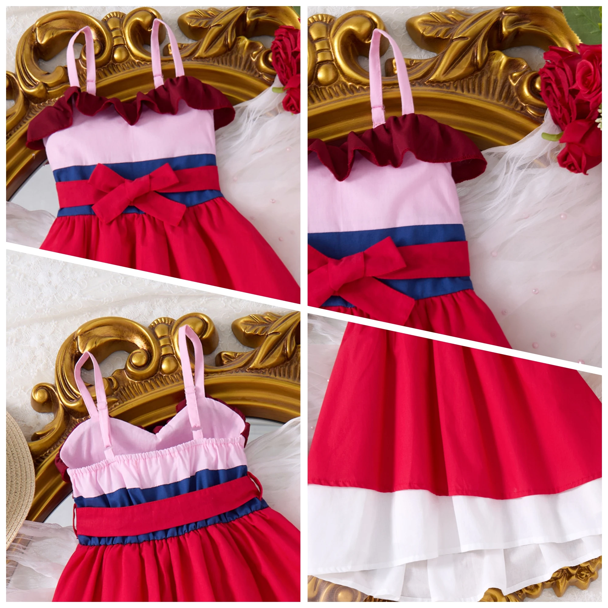 Children Baby Girls Lace Up Sling Summer Dress Princess Sleeveless Suspenders Dresses For 1-10 Years Cool Ventilated Kid Clothes