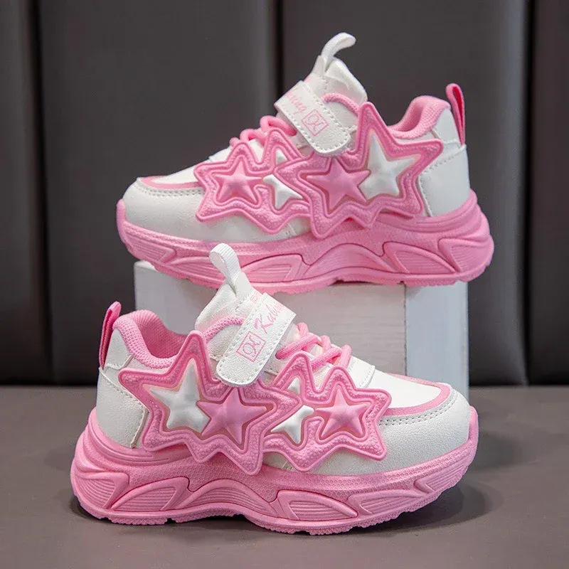Children Casual Shoes for Girls Fashion Classic with Stars Girls Sports Running Sneakers Breathable PU + Rubber Anti-skid Soft