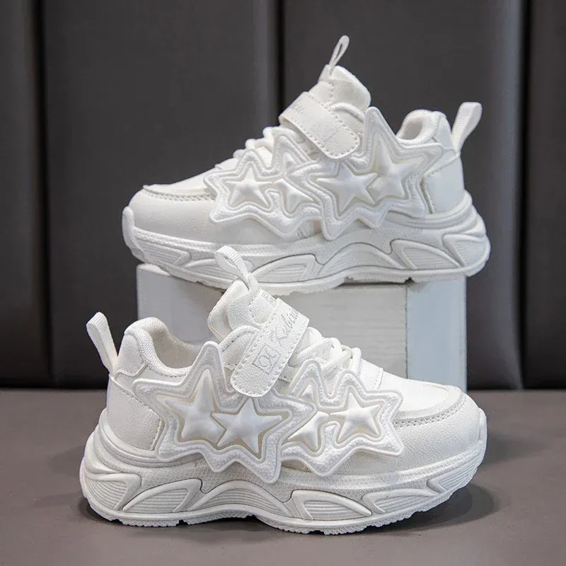 Children Casual Shoes for Girls Fashion Classic with Stars Girls Sports Running Sneakers Breathable PU + Rubber Anti-skid Soft