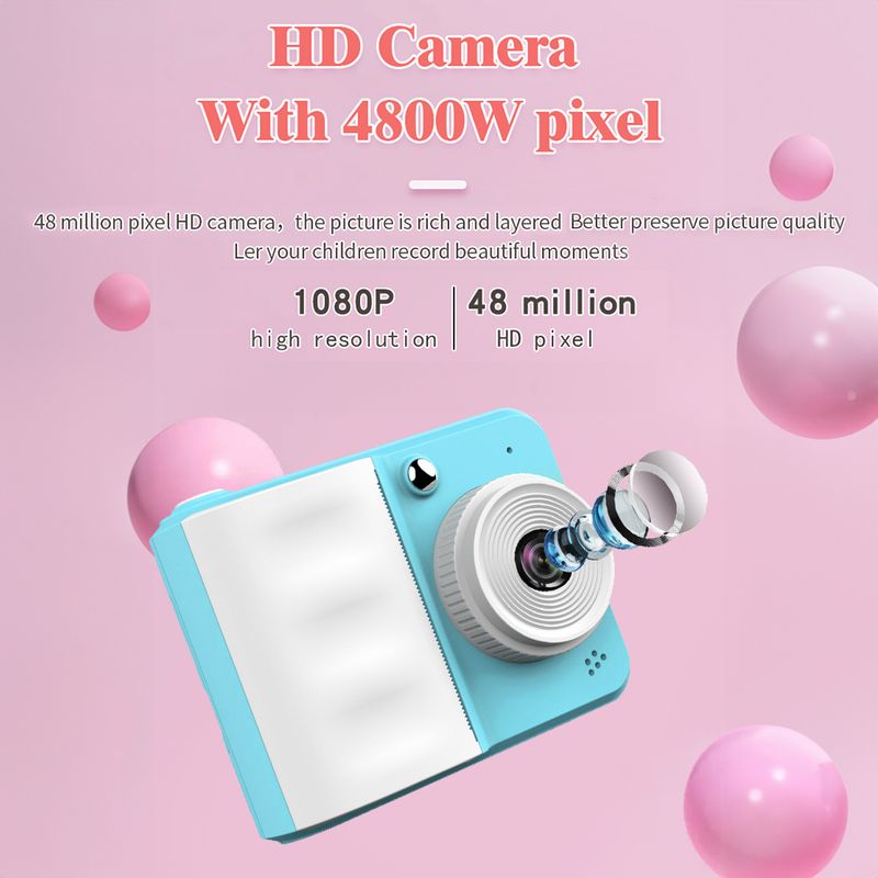 ćOne Button Instant Print Camerać This toddler camera adopts thermal printer technology, just press the button then you can get a black-and-white printed picture in seconds.