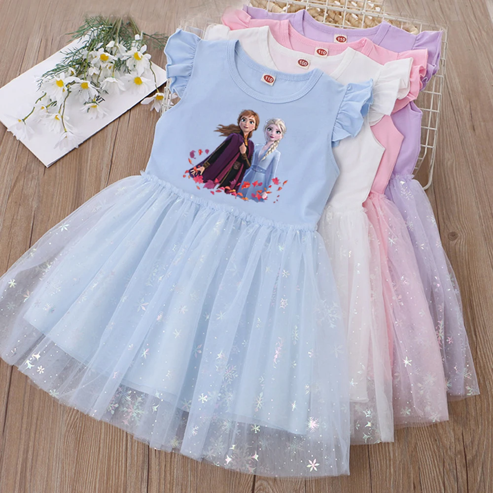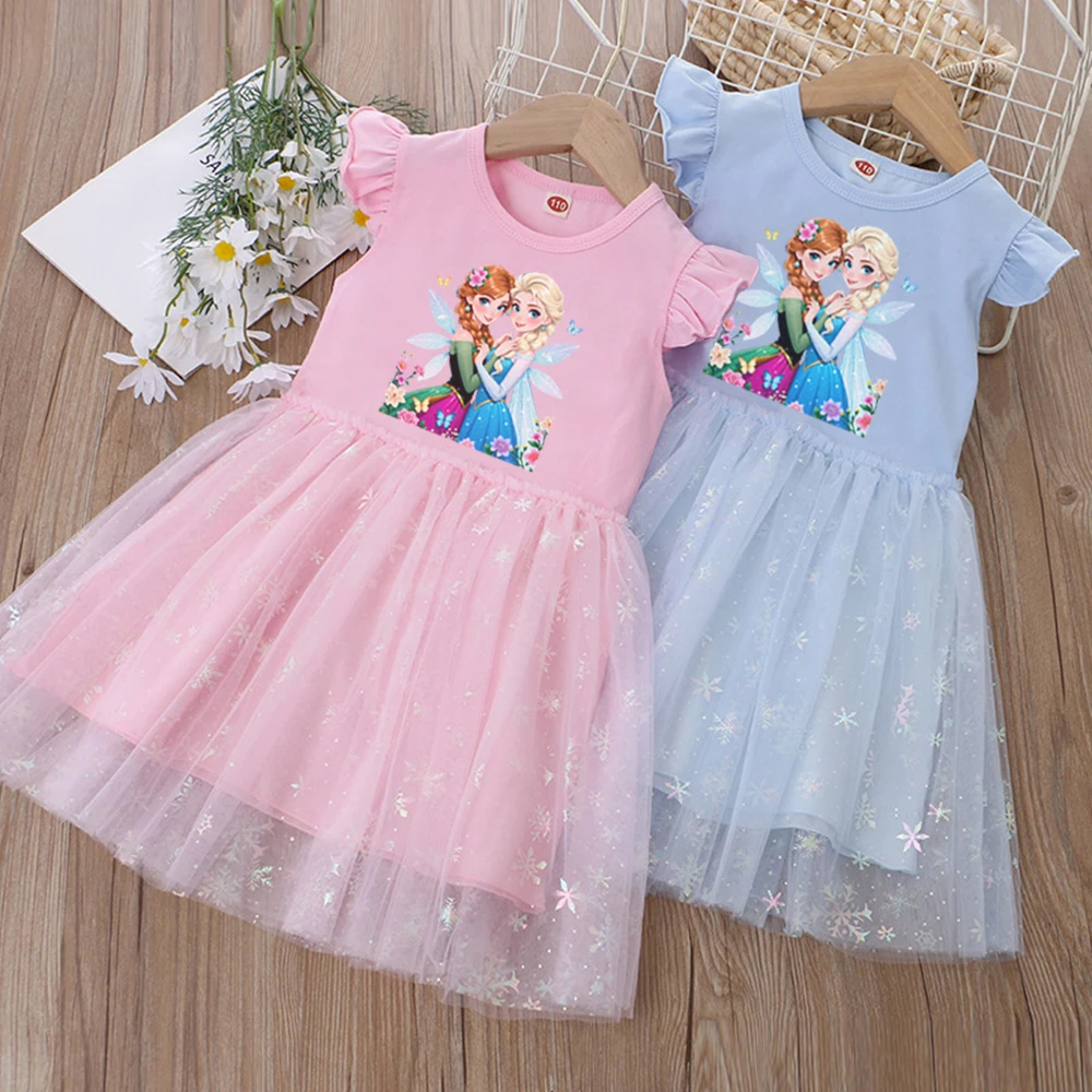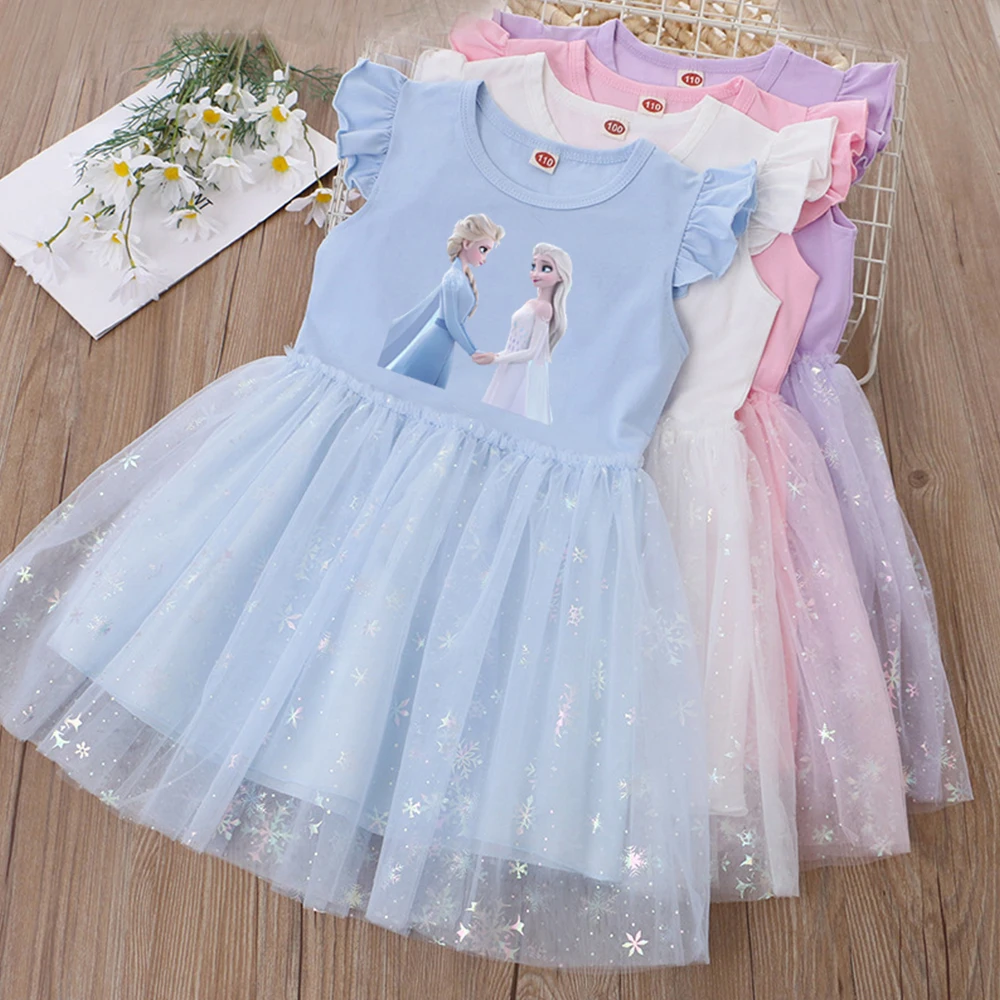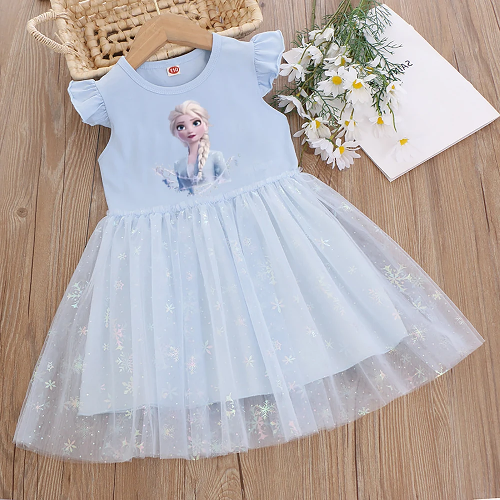 Children Frozen Elsa Princess Girls Dress Kids Disney Clothes Short Sleeve Dresse Summer Baby Girl Toddler Birthday Party Dresse