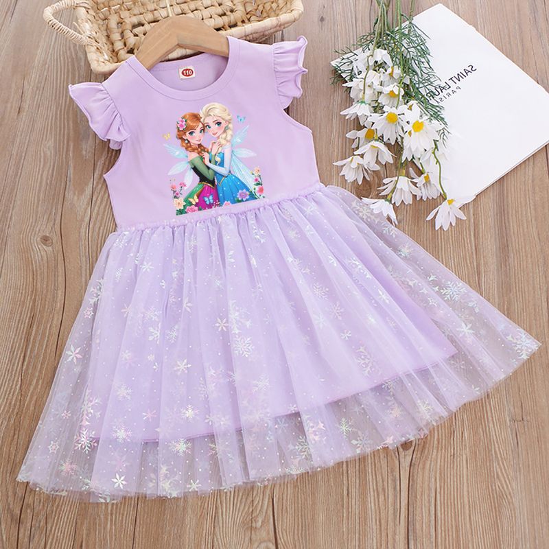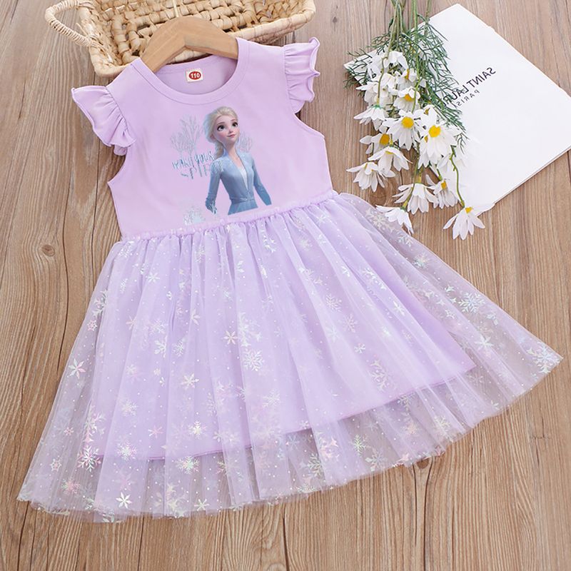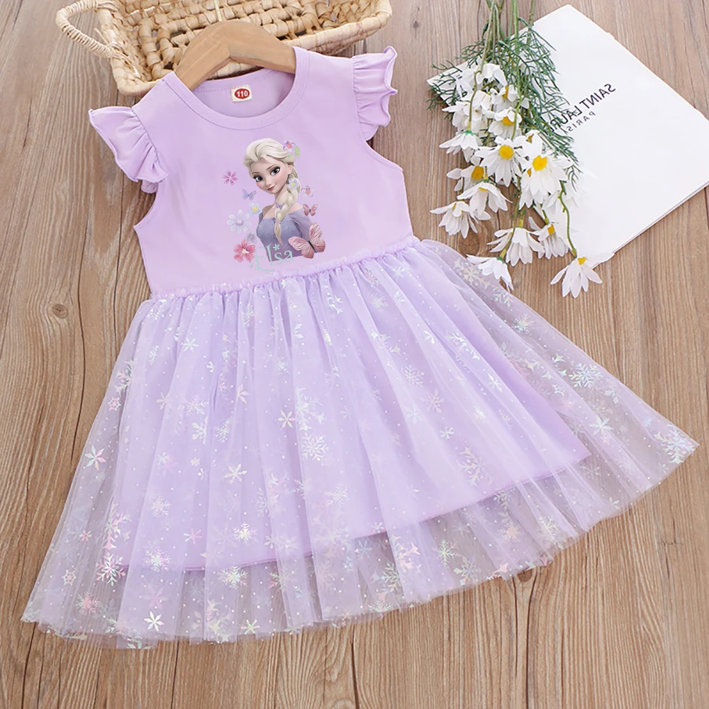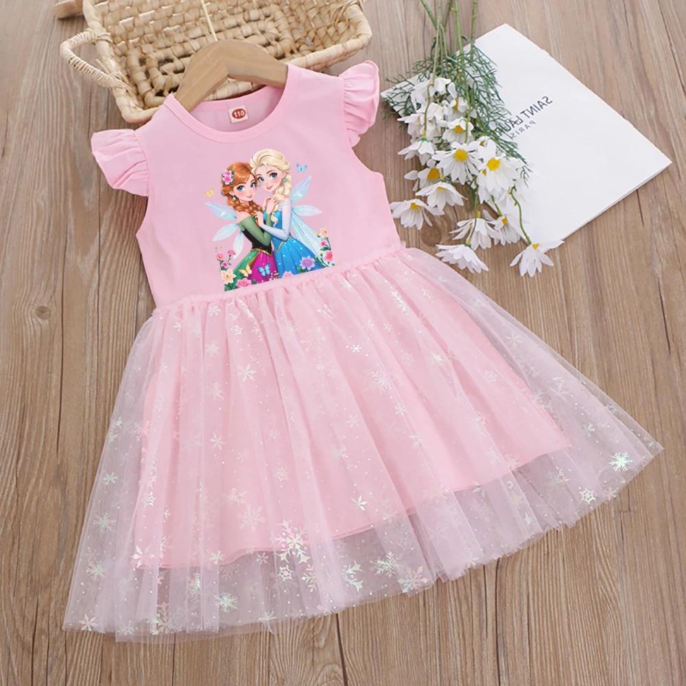 Children Frozen Elsa Princess Girls Dress Kids Disney Clothes Short Sleeve Dresse Summer Baby Girl Toddler Birthday Party Dresse