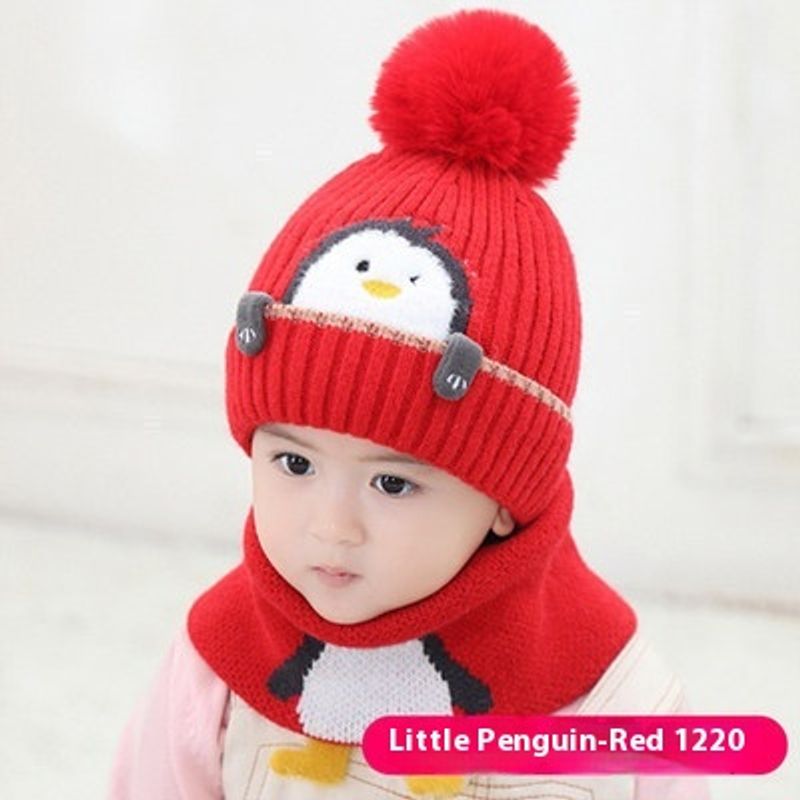 Children Hat Children Fleece-lined Thickening Woolen Cap Red Set