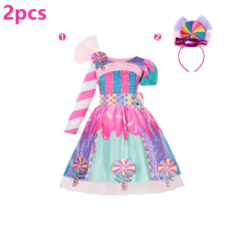 Children's Candy Dress Candy Princess Cosplay Costume Purim Carnival Party Fancy Dress Dress with Candy Hat Suit Prom Costume