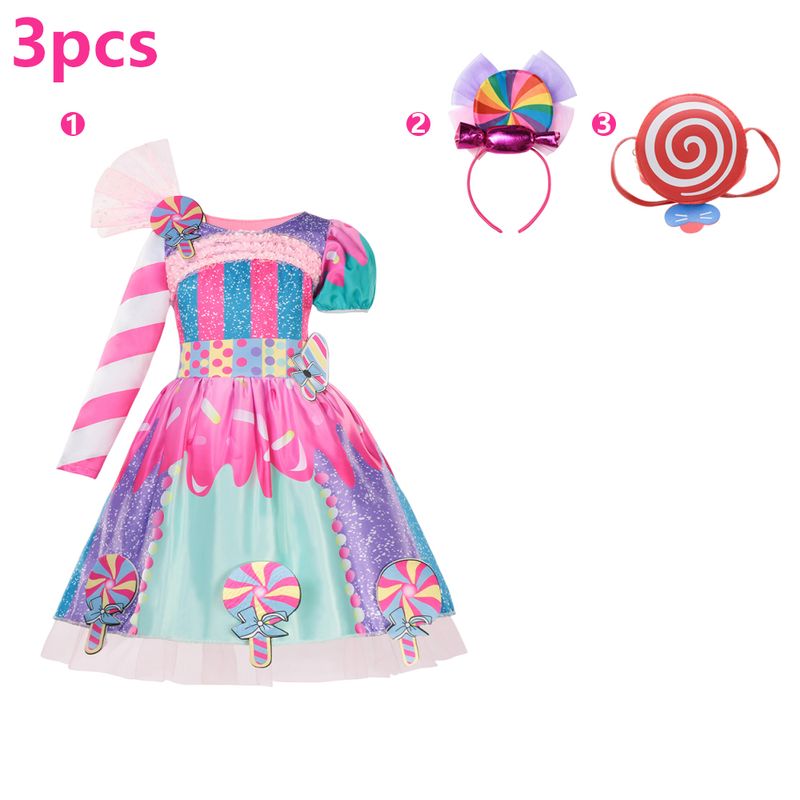 Children's Candy Dress Candy Princess Cosplay Costume Purim Carnival Party Fancy Dress Dress with Candy Hat Suit Prom Costume