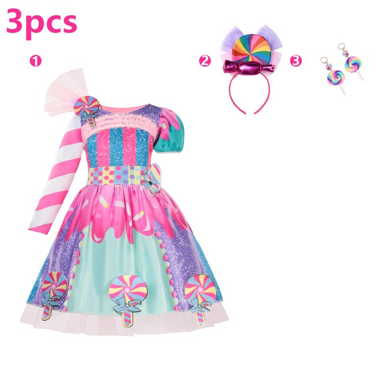 Children's Candy Dress Candy Princess Cosplay Costume Purim Carnival Party Fancy Dress Dress with Candy Hat Suit Prom Costume