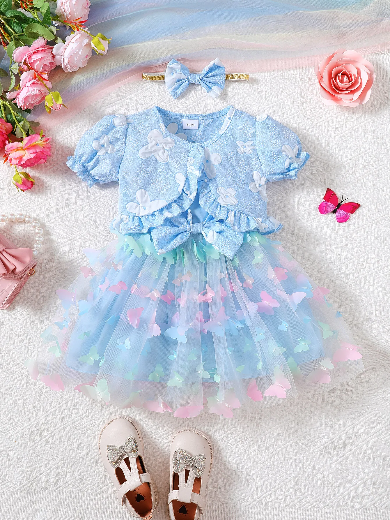 • Adorable Butterfly Pattern :This dress features a beautiful little butterfly pattern, adding a touch of whimsy and charm to your little girl's outfit.