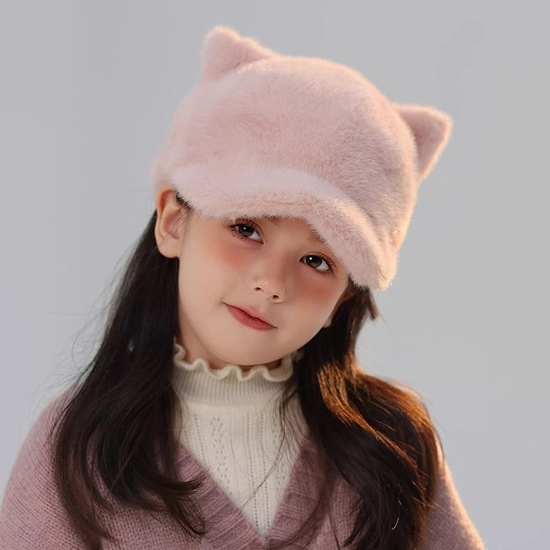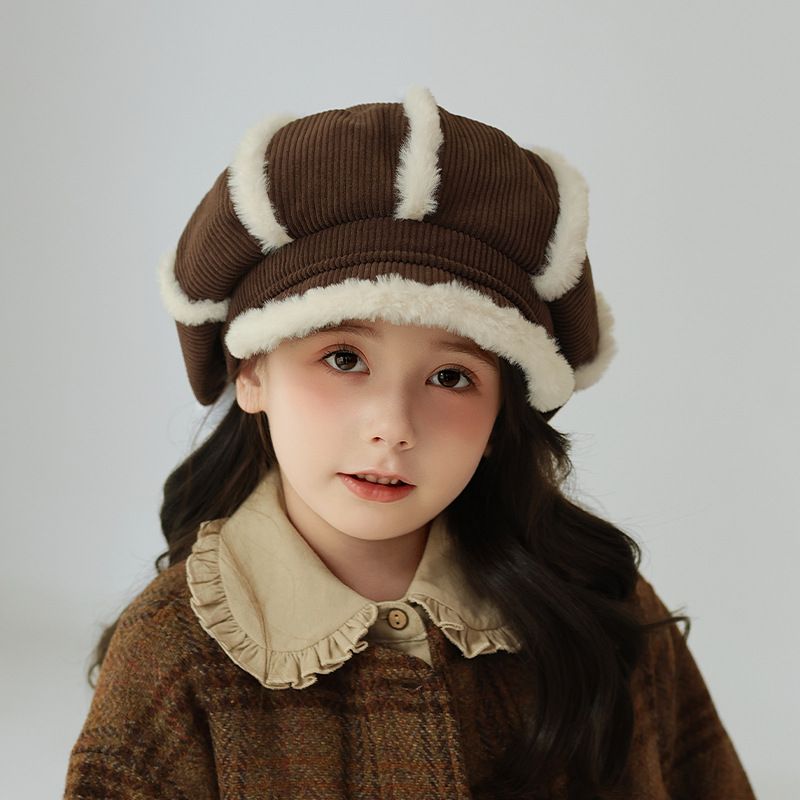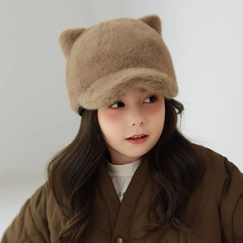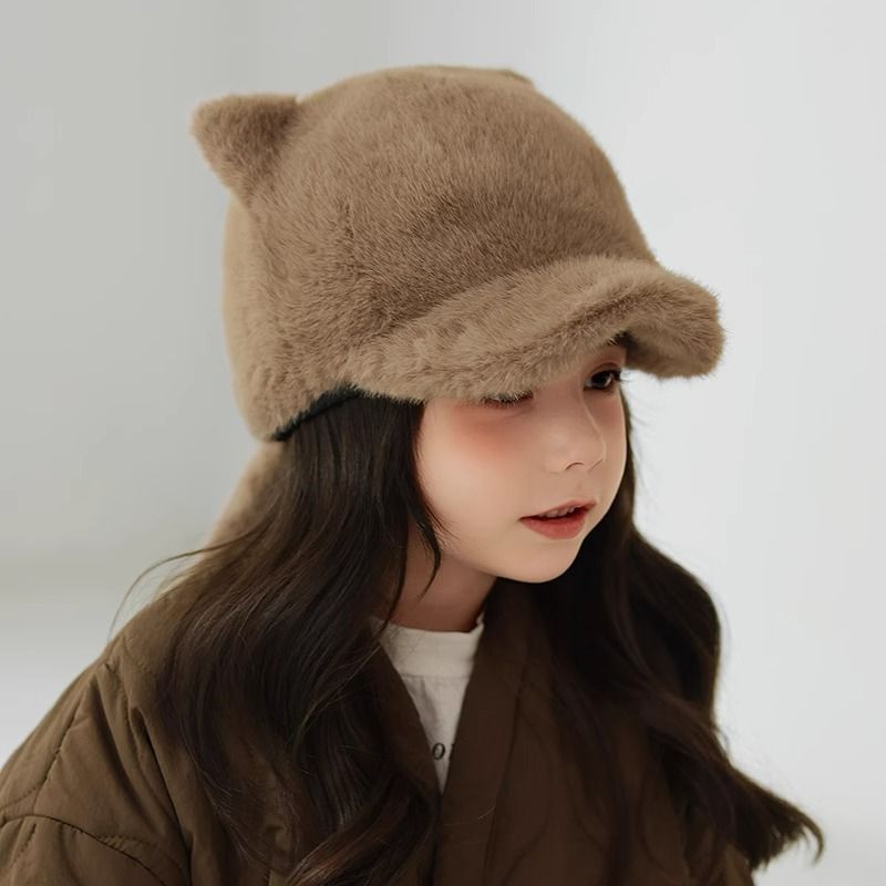 Children's Hat Thickened Warm Plush Baseball Cap Khaki2 Free Size