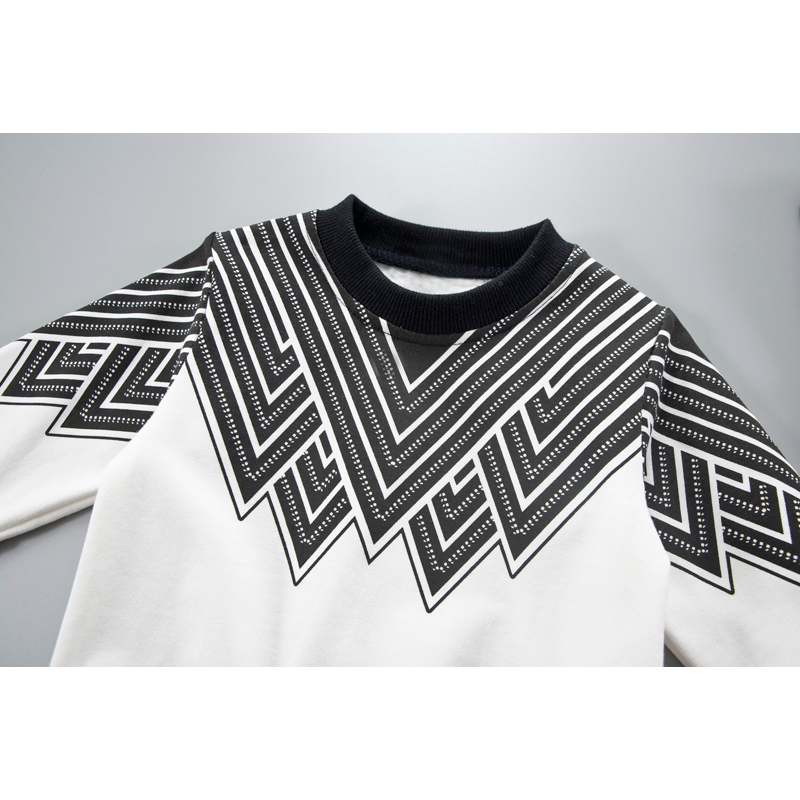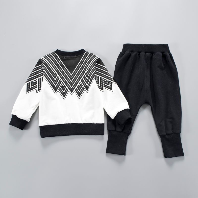 Children's long-sleeved suit printed two-piece casual sweater trousers White Black 100cm