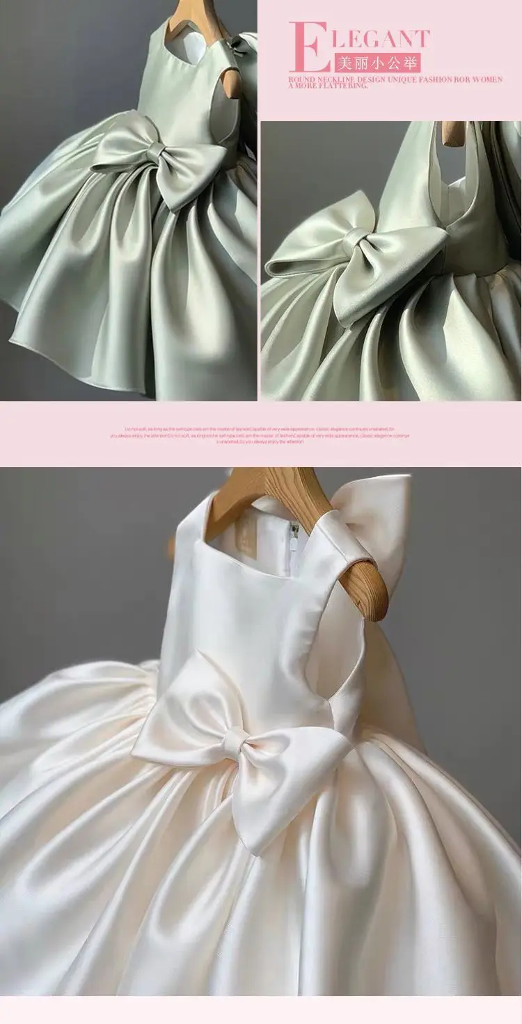 Children's Princess Dress 12M-8Y Girls' Baby Flower Children's Clothing Girls' First Birthday Evening Dress White Dress