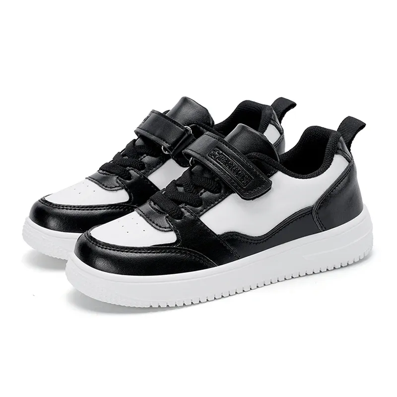 Children's Running Shoes Boys Girls Lightweight Anti-Slip Sneakers for School Sports Walking Casual PU Leather Tennis Shoe Black