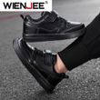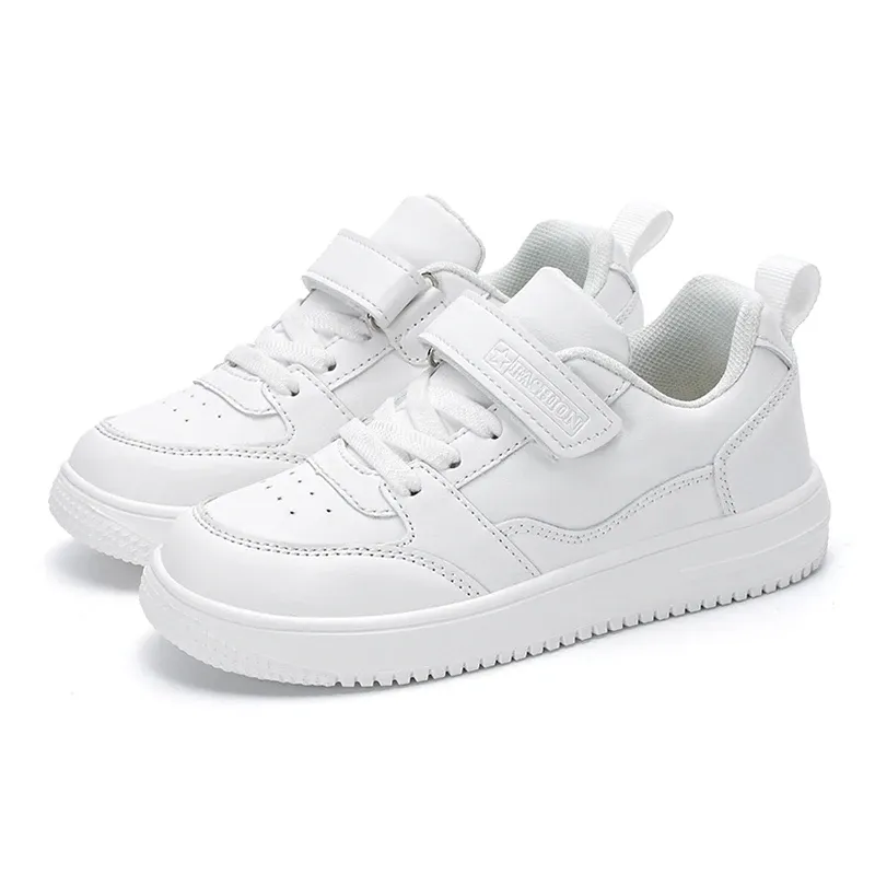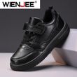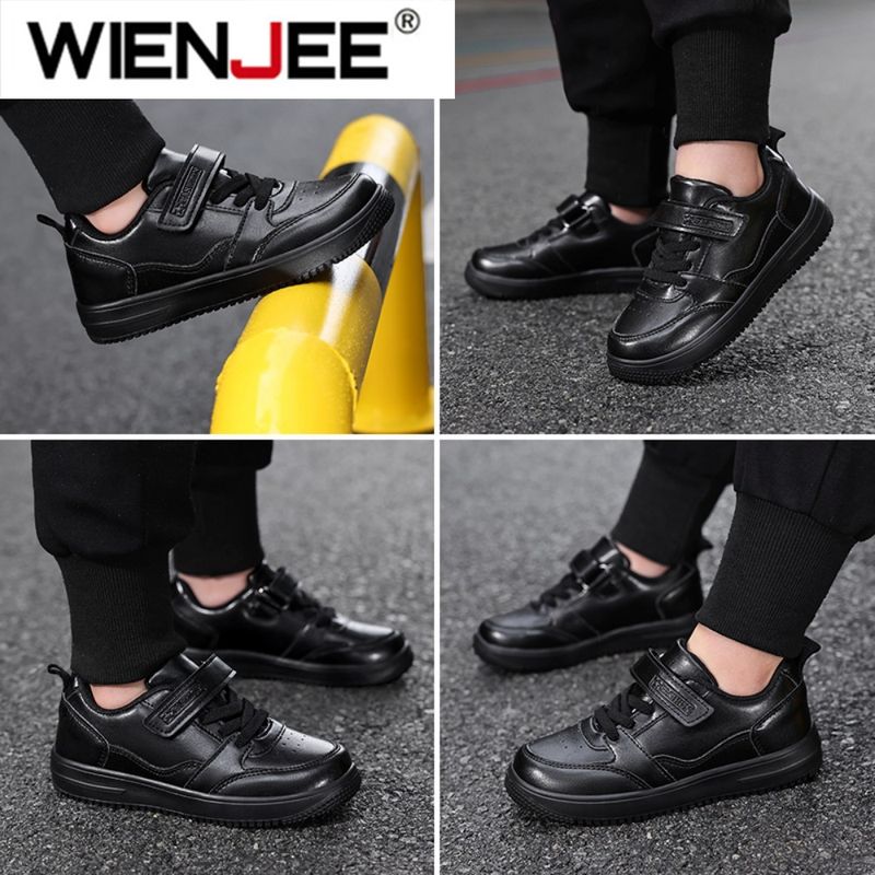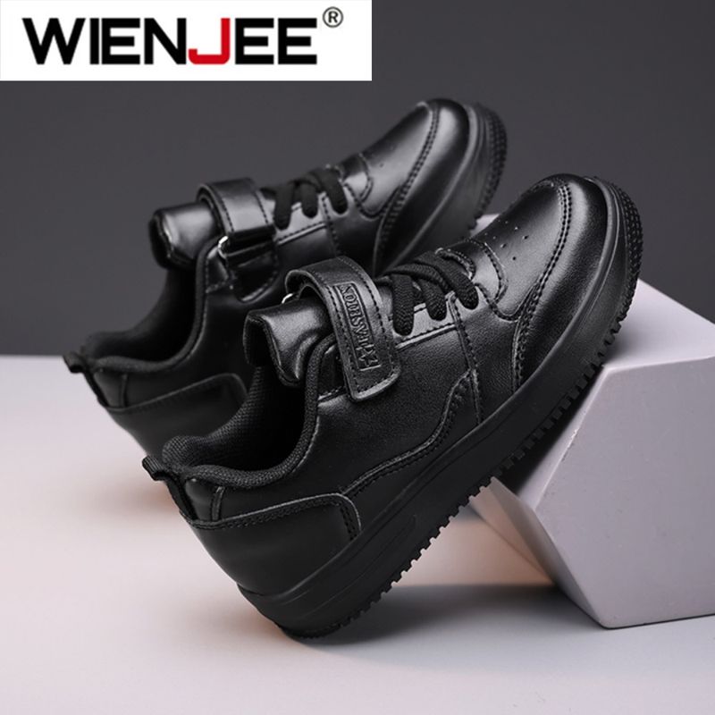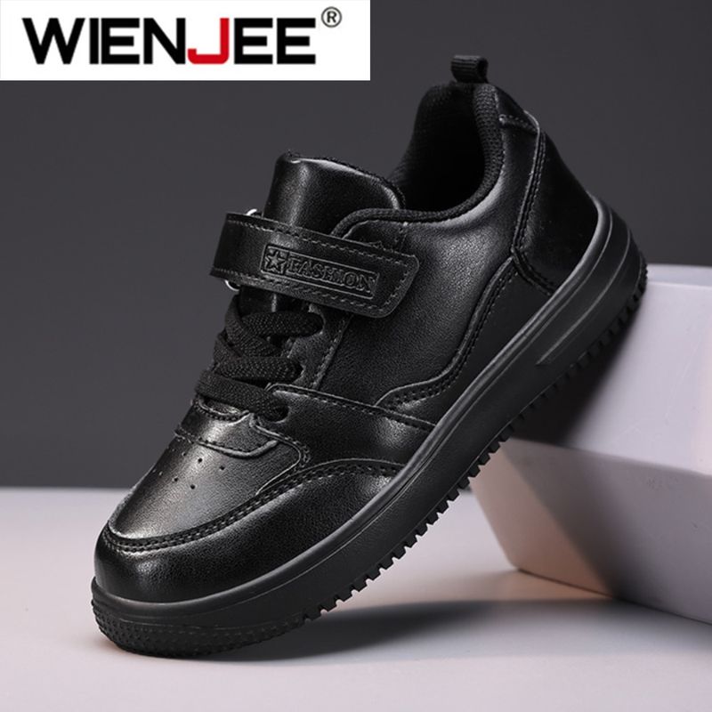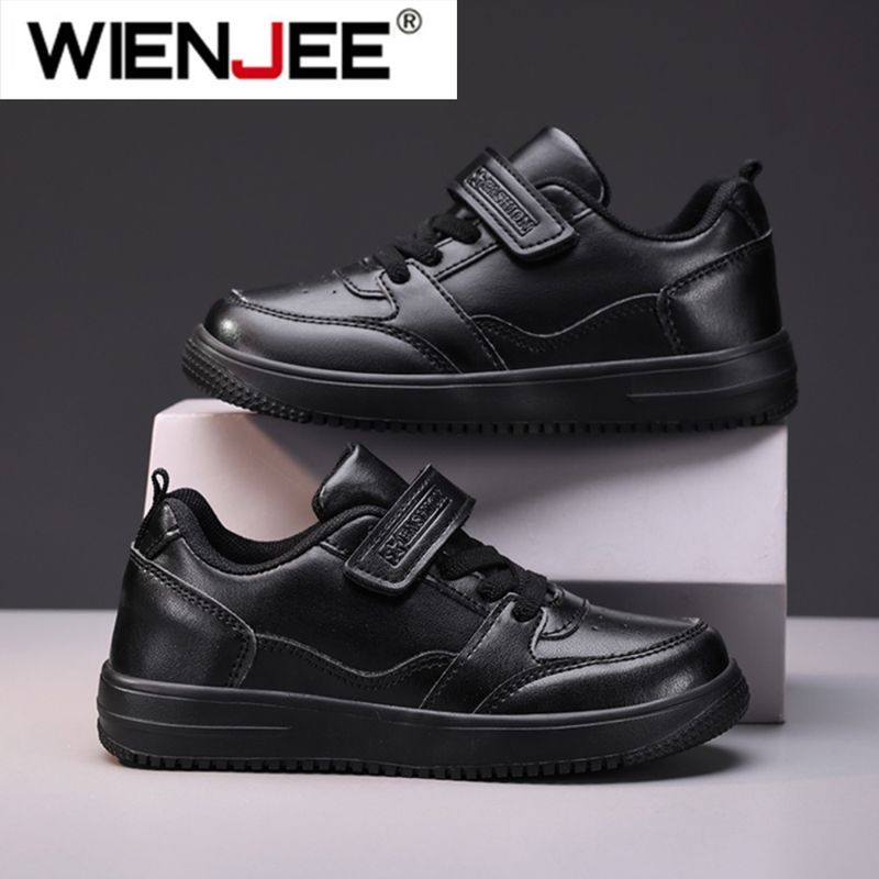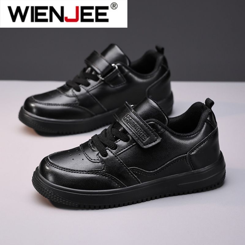 Children's Running Shoes Boys Girls Lightweight Anti-Slip Sneakers for School Sports Walking Casual PU Leather Tennis Shoe Black