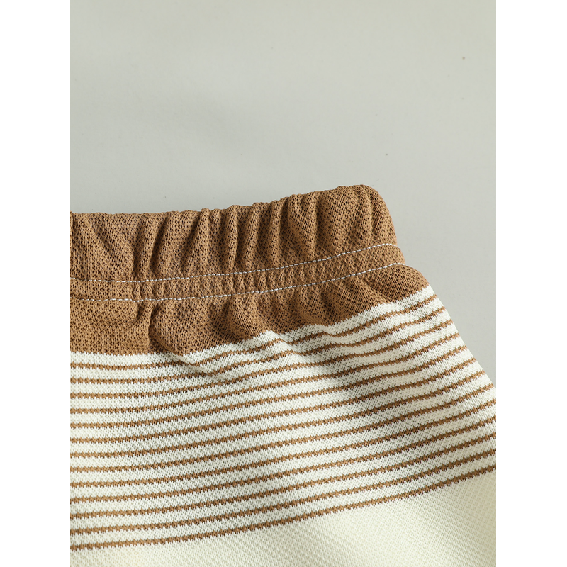 Children’s Summer New Arrival Boys’ Regular Striped Teddy Bear Short T-Shirt and Shorts Casual Sport Two-Piece Set