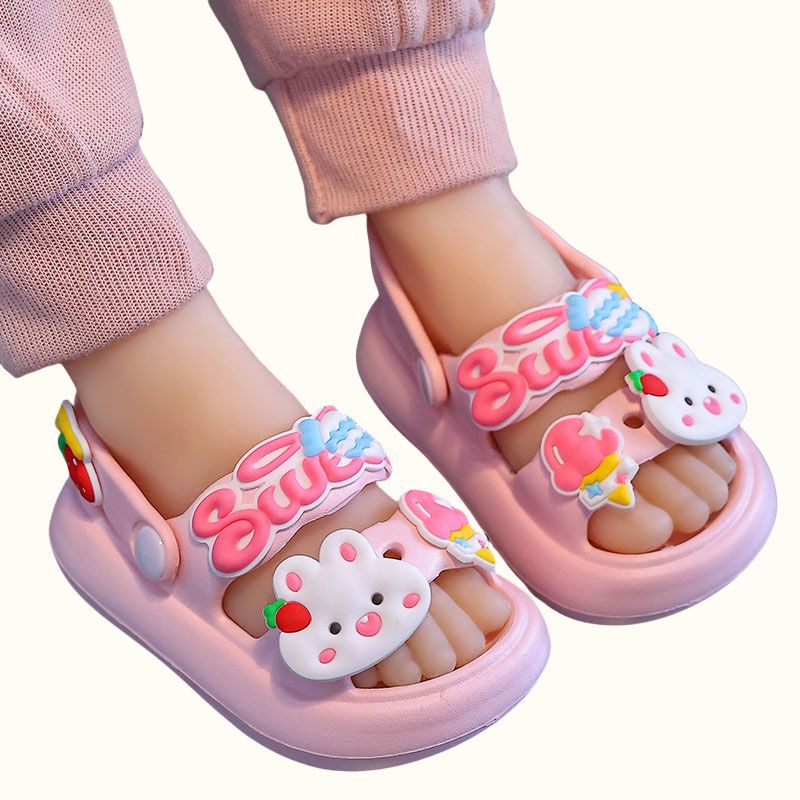 Children Sandals Slippers Soft Anti-Skid Cartoon rabbit panda DIY Design Hole Baby For Boys Girls Summer Kids Sandy Beach Shoes