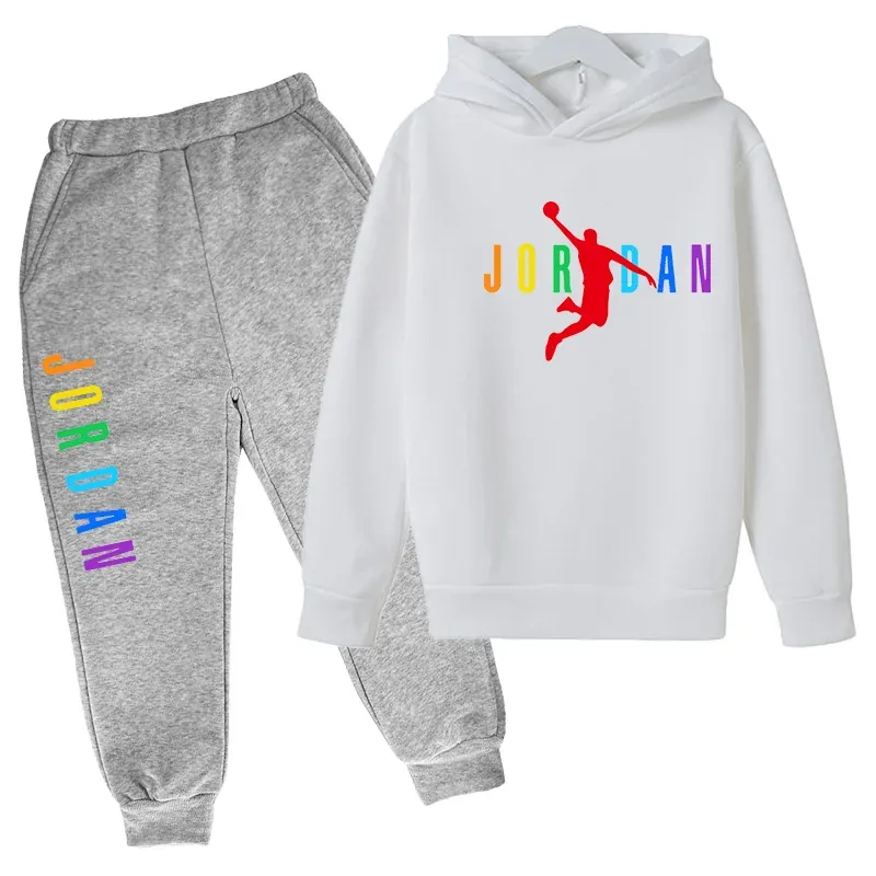 Children Sports Coat 3-13 Years Hoodie Basketball Letter Print Boys Sweatshirt Girls Toddler Top + Trousers 2P Stylish Casual Se