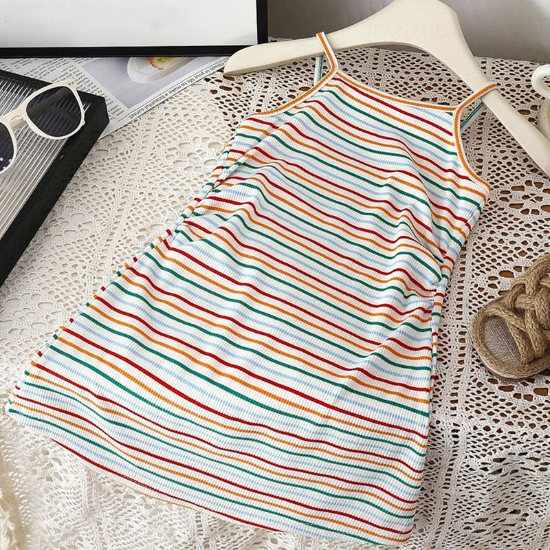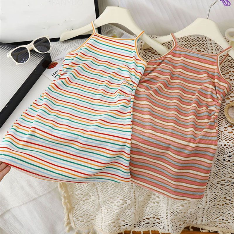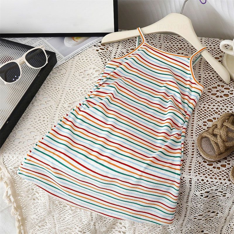 Children Suspender Striped Long Skirts Girls Baby Princess Summer Casual Vest Dresses Fashion Versatile Student Kids Short Skirt