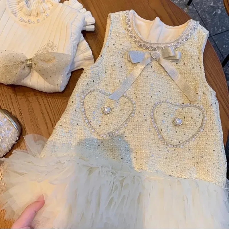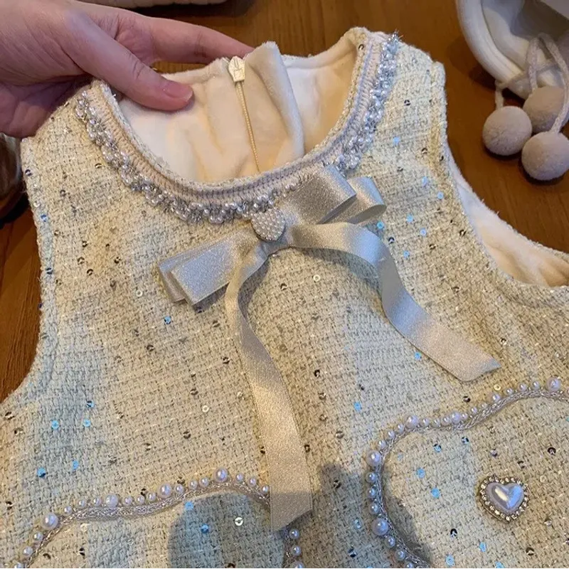 Childrens Clothing dress 2024 New Baby Plush Vest Skirt Fashion beautiful dress Baby Girl Clothes