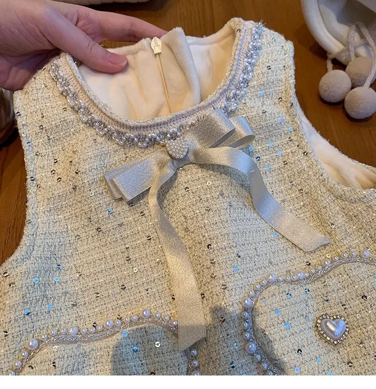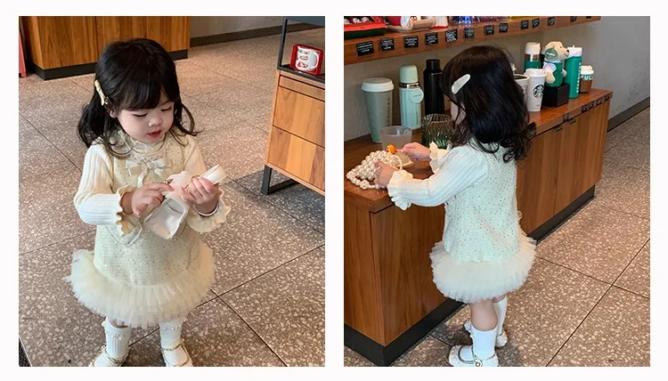 Childrens Clothing Set 2024 New Baby Plush Vest Skirt Fashion Two Piece Set Baby Girl Clothes