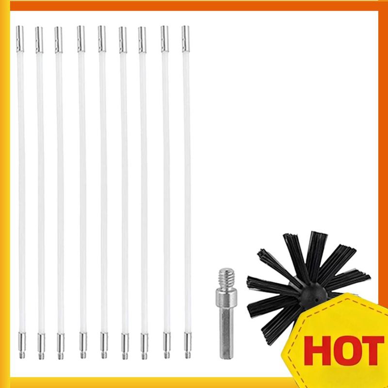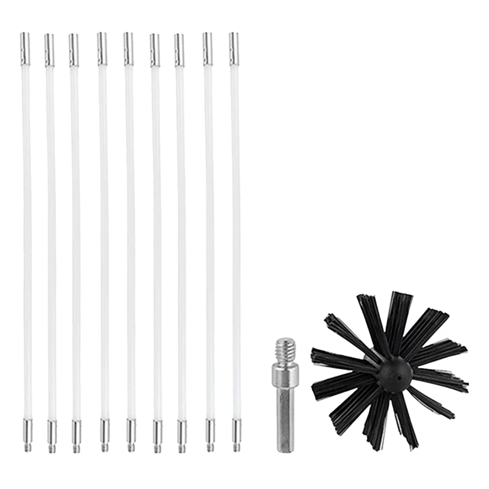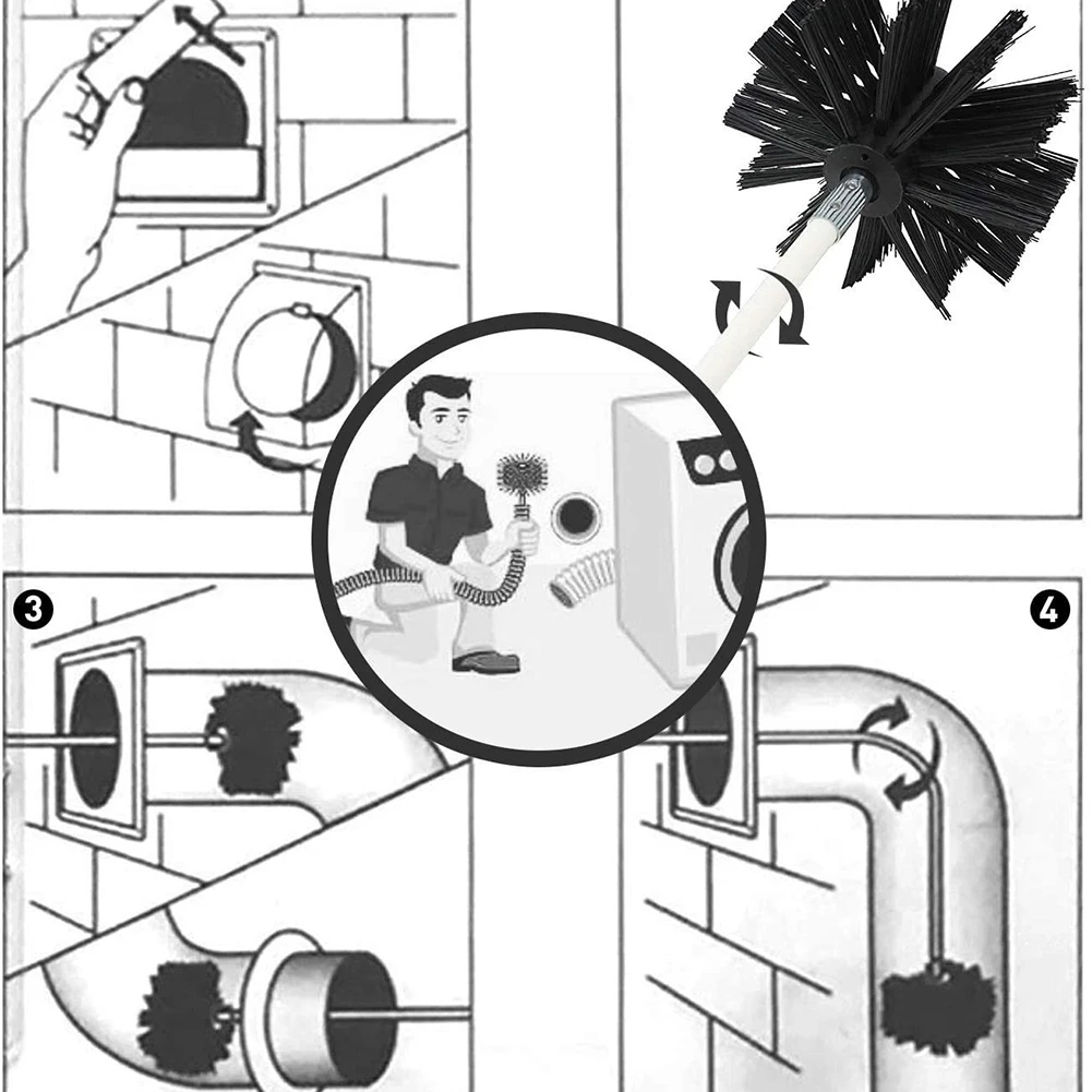 Chimney Brush Set with Long Handle Rods Air Duct Cleaning Tool Flexible Rotary Chimney Brush Fireplace Inner Wall Cleaning Tools Specification: Origin: Mainland China Material: Nylon Color: Black + White Type: Chimney Brush Brush Head Diameter: 150mm Single Connecting Rod Length: Approx. 410mm/16.1in (9 Pieces) Connecting Rod Diameter: Approx. 8.3mm/0.3in