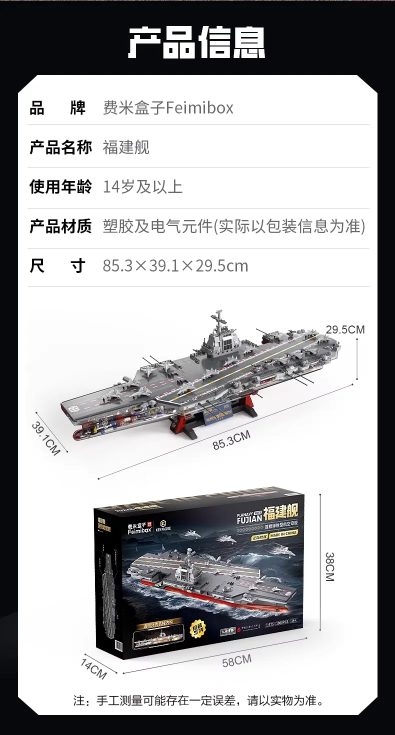 Chinese Fujian Aircraft Carrier Building Model, Super Large Difficult Assembly Puzzle for Adult Collectors
