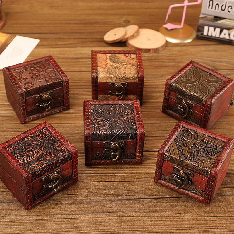 Chinese Style Vintage Wooden Jewelry Box With Lock Trinket Packing Box For Ring Brooch Bracelets Earrings Ear Studs Storage Box