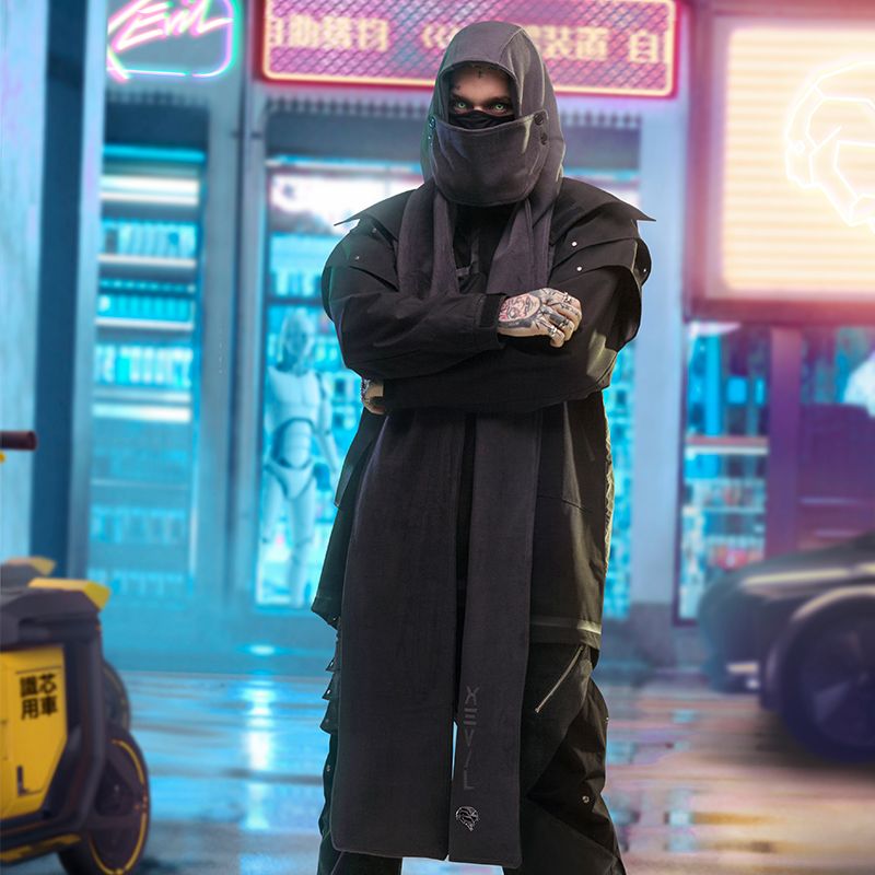 Chinese Style Warm Fleece Hoodie Scarf Black