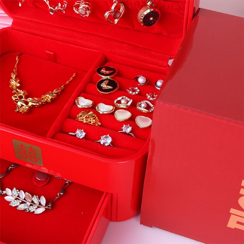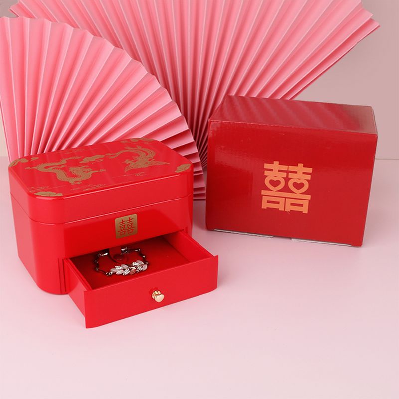 Chinese Style Wedding Jewelry Box, Red Lacquer Bridal Gift for Bride, Traditional Handmade Vintage Wedding Party Accessories
