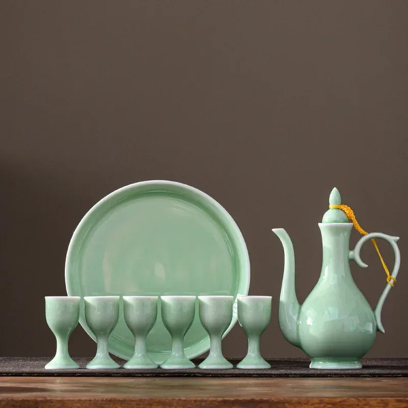 Chinese Style Wine Divider Ceramic Retro Wine Jug 20ml Goblet Antique Invitation Wine Jug Set Gift Box Set