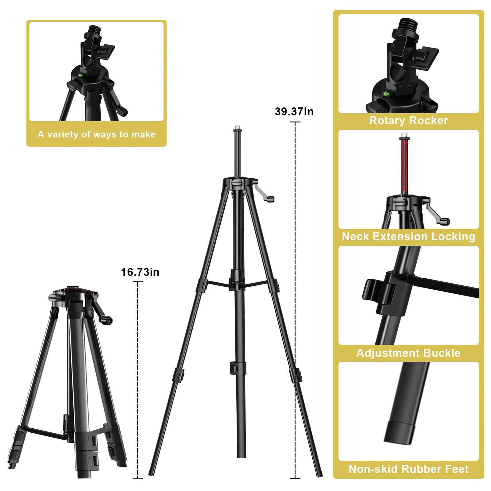 The laser level features 1/4”-20 mounting thread,so it can be installed in any tripod,bracket with 1/4”-20 mounting thread,and with the included lifting base,magnetic bracket,and mounting screws,you can easily installed according to the locating you need to place the laser level.